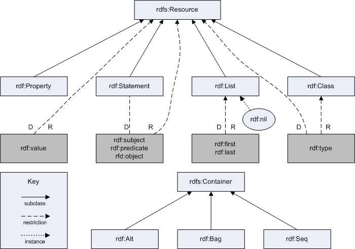 - rdfs:Container - the set of containers (Bag, Seq, Alt)